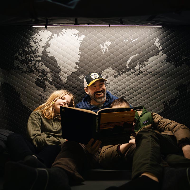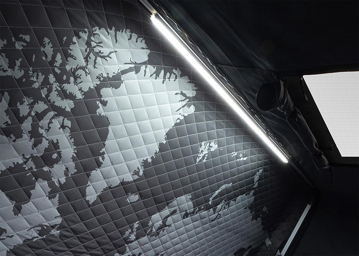 Integrated, Bi-colour, USB-powered* LED light strips light up the tent interior and the underside of the fold-out deck. Independent, dimmable controls for each keep camp safe, efficient, and fun after dark. *USB power source not included.