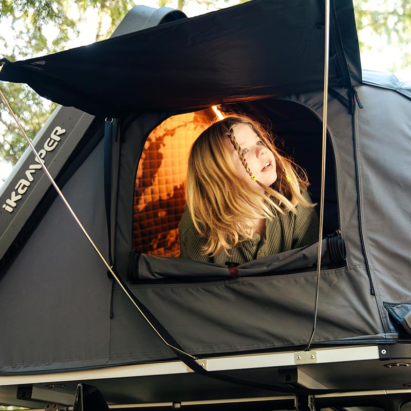 Efficient design unfolds to double the sleep area while remaining compact underway. You won’t find another hard-shell roof top tent that’s as generous and comfortable.