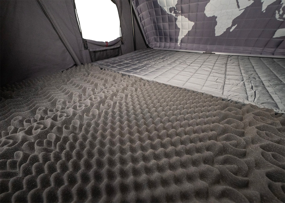 The aluminium floor panel folds out into a king-size footprint. We've also increased the thickness and quality of the Skycamp® 3.0's mattress. It features a 9-zone comfort design with an insulating layer to reduce condensation. You won't find another hard shell roof top tent that’s as spacious and comfortable as this one.