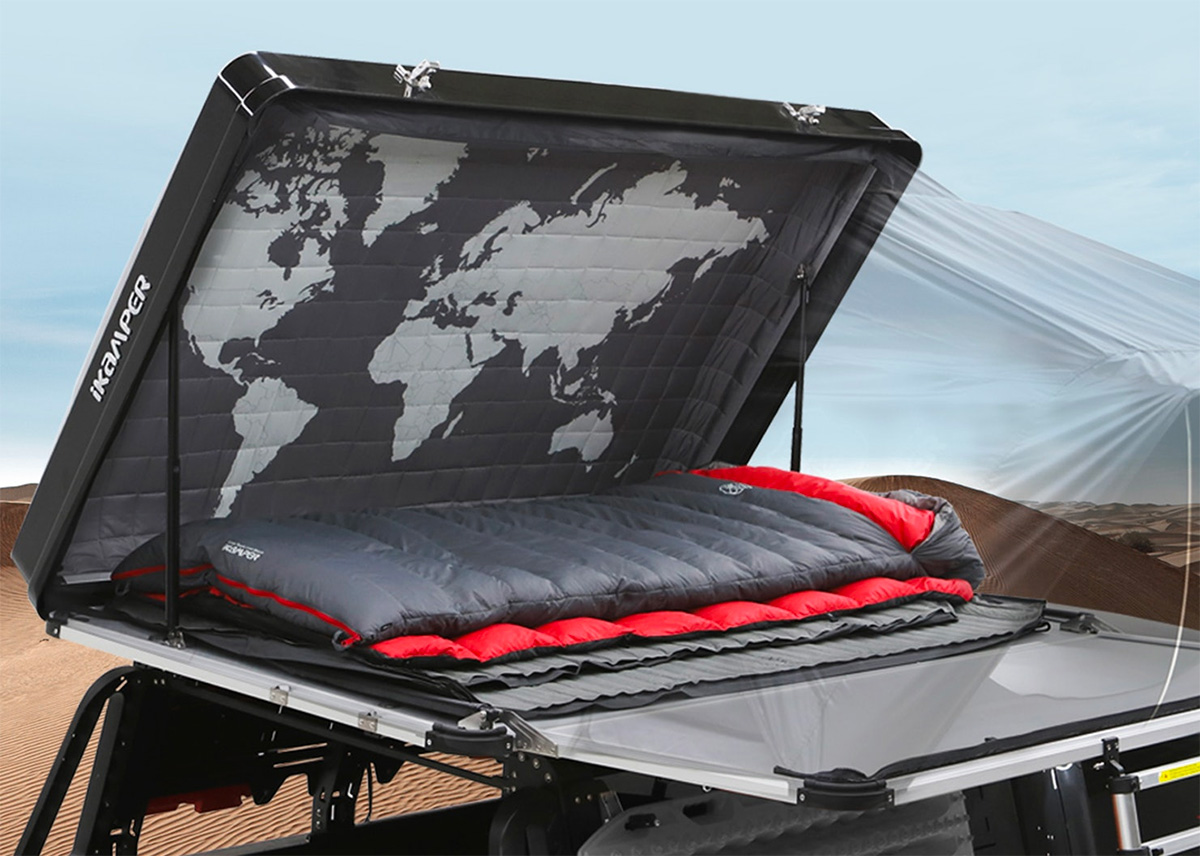 The signature fold-out extension panel offers plenty of legroom and makes our tent simple to set up and take down. An improved aerodynamic hard shell allows more bedding storage inside the tent so you can spend less time making your bed, and more time enjoying it. The spacious interior includes a thick 9-zone king-size mattress and insulated roof.