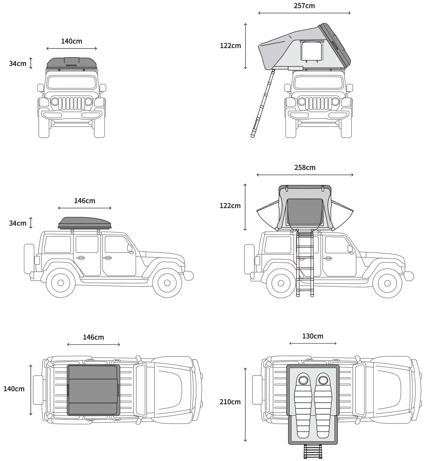 Efficient design unfolds to double the sleep area while remaining compact underway. You won’t find another hard-shell roof top tent that’s as generous and comfortable.