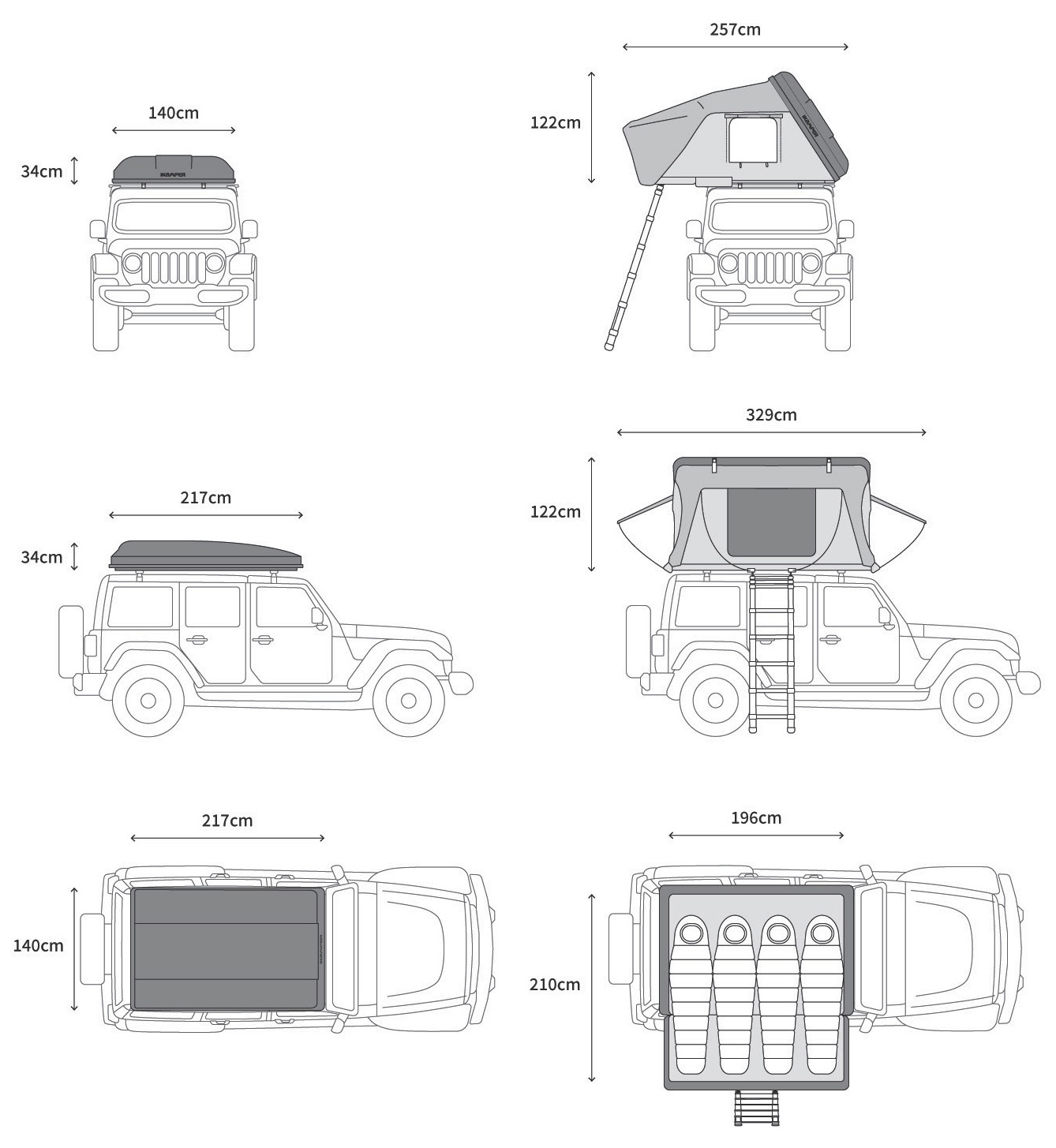Efficient design unfolds to double the sleep area while remaining compact underway. You won’t find another hard-shell roof top tent that’s as generous and comfortable.