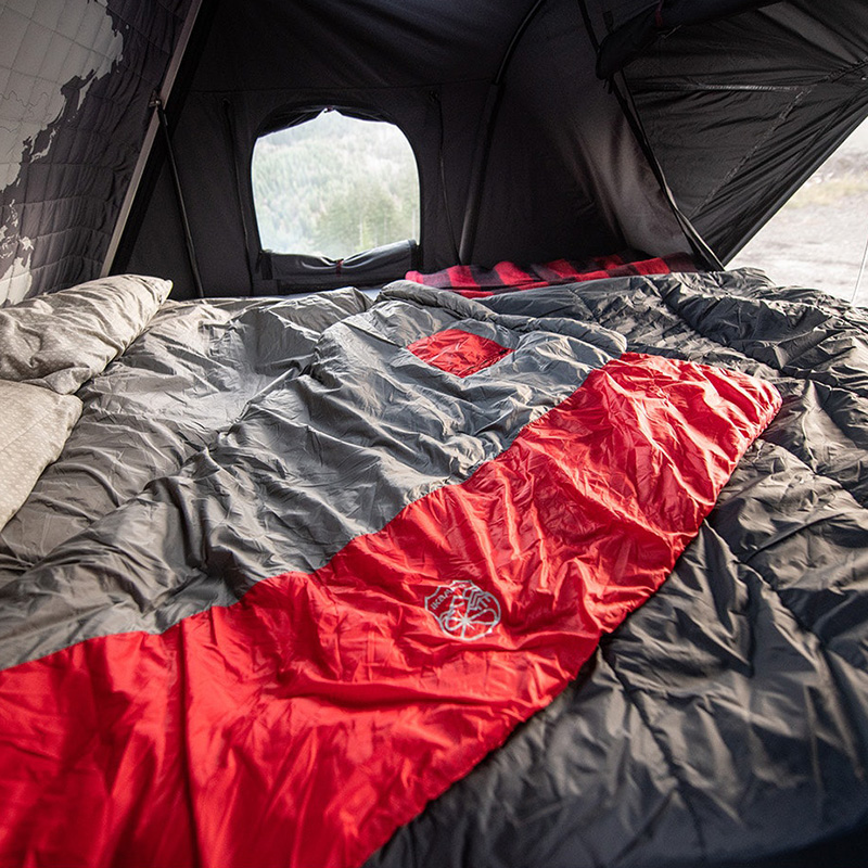 Why use a tight backpacking sleeping bag in your RTT when you have so much room to spare? The RTT Sleeper was thoughtfully designed specifically to be used in roof top tents: its rectangular shape gives you plenty of room, and 60% of the fill is in the top portion of the bag, keeping you warm where it counts.
